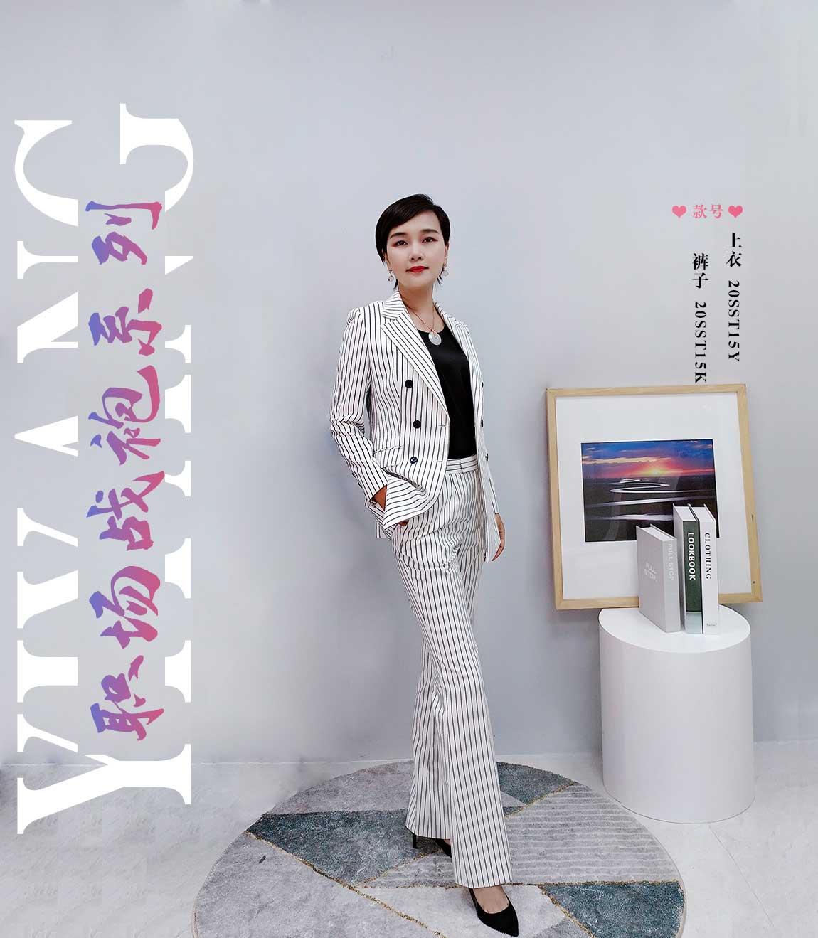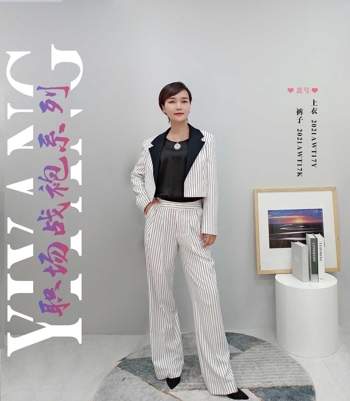 新款氣質(zhì)條紋干練款套裝