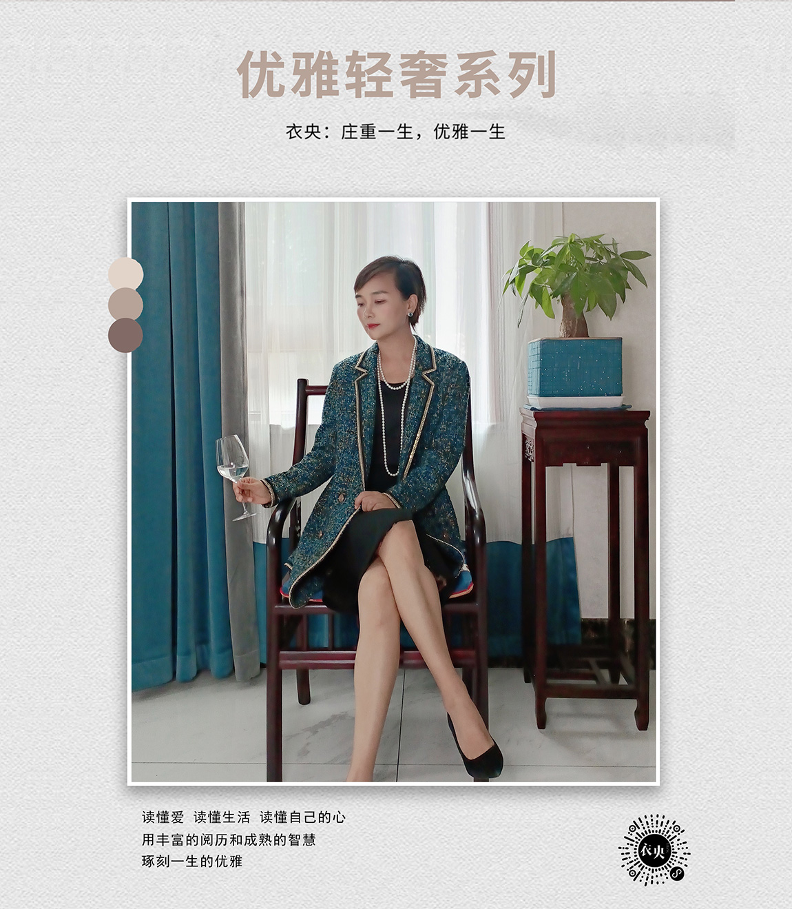 • 【衣央】時尚輕奢中淑氣質水波紋羊毛大衣